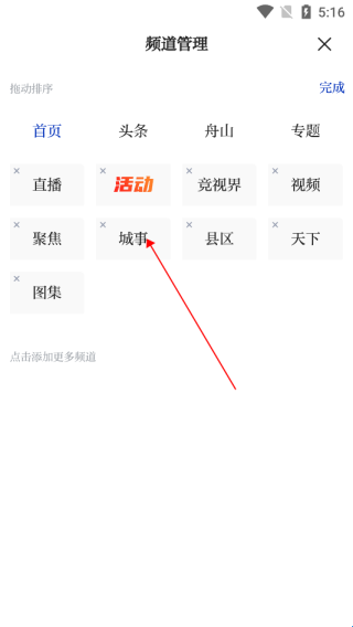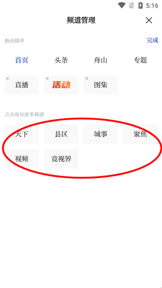 4、删除掉的频道会在下方显示,后续需要的话可以继续点击添加上去,编辑好之后点击完成