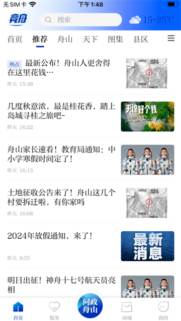 新闻资讯:竞舟提供包括头条新闻、财经、体育、娱乐、科技等全方位的新闻资讯,覆盖国内外各行各业的最新动态,特别是针对舟山地区的本地新闻,更新迅速,内容详实。