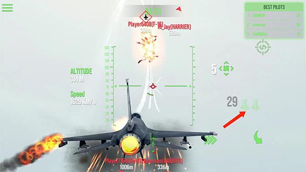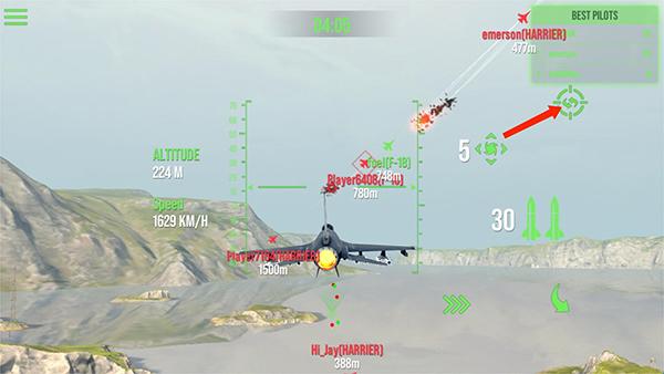 5、红色方为敌机,当前方出现敌机时,点击右上方【瞄准】图标进行锁定,