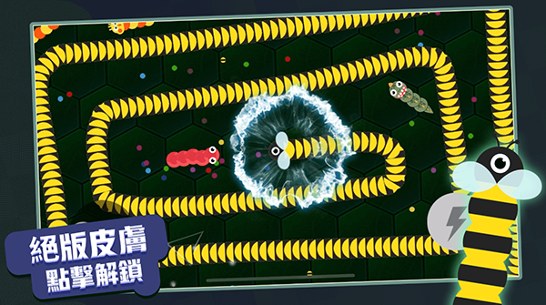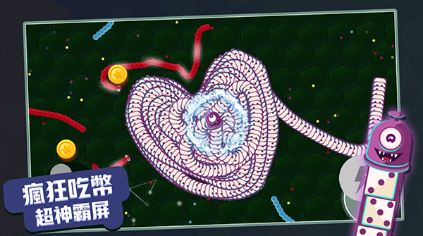 2、巧妙的走位,吞噬沿途金币,解锁数十种百变造型蛇蛇皮肤;