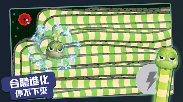 1、贪吃蛇进化论玩家控制摇杆走位你的小蛇,不断地吞噬这里的一切;