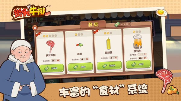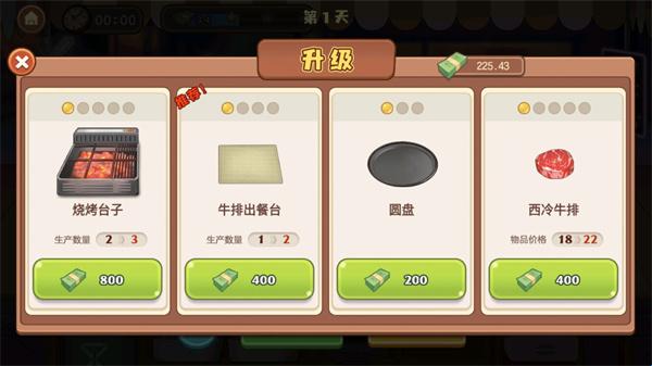 4、游戏中还拥有升级牛排摊养成要素,你可以全面发展你的摊子;