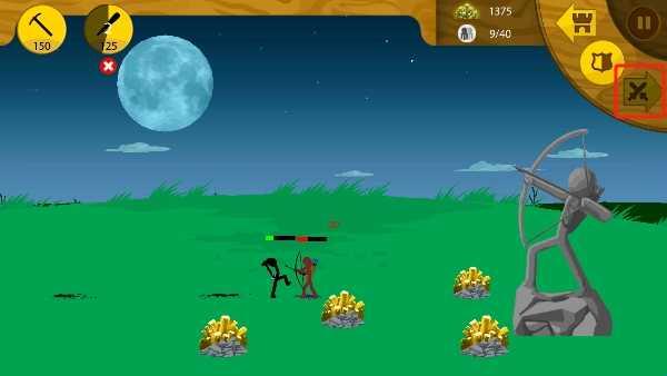 4、弓箭手成型后非常好压制电脑,所以有个技巧可以不让电脑农民采矿:将屏幕滑到电脑的城堡弓箭手那里,然后进攻,电脑都会撤兵,所以只需要看电脑的城堡弓箭手什么时候发箭,他攻击就防御,他出来就攻击。这样可以完全不让电脑有经济,所以这时我们只需要等兵多了然后一波了