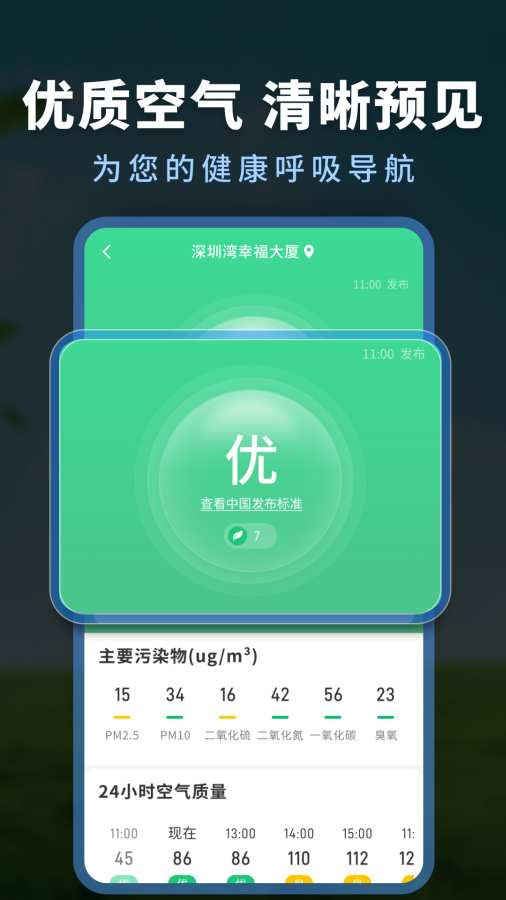 3、实时跟踪空气质量指数,关注健康风险,实时进行规划。