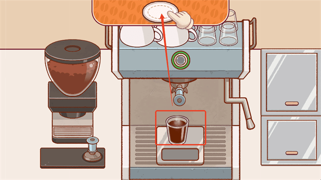3.玩家需要在前台接受客户的订单,然后回到生产室制作咖啡,然后把它交给客户完成交易。