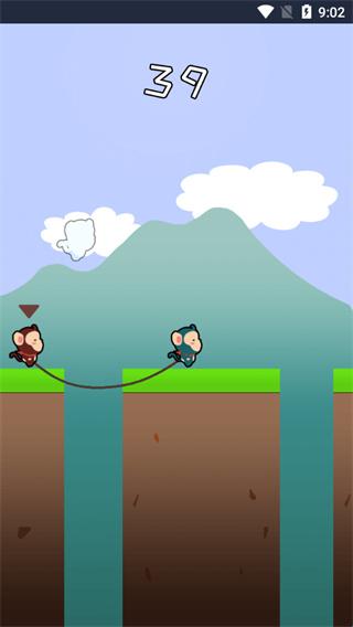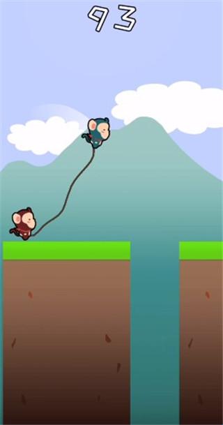 2、两猴子是依次开始的,点击屏幕即可让他们跳跃;