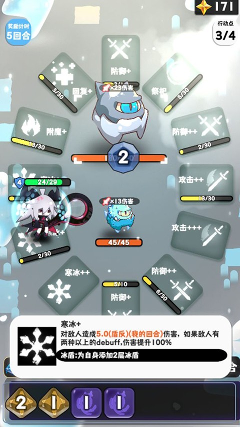 1、每回合获得行动点(初始为4点)和抽取骰子(初始为5个),会按照手中的骰子顺序抽取。