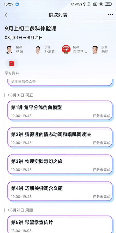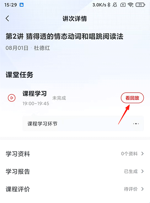 1、在希望学APP学习页点击需要看回放的直播课程;