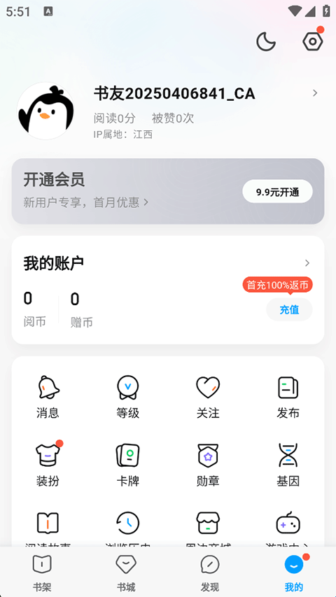 3、新用户首次登录成功后,系统会自动发放10天免费阅读权益,您可以在书架中选择书籍开始阅读。