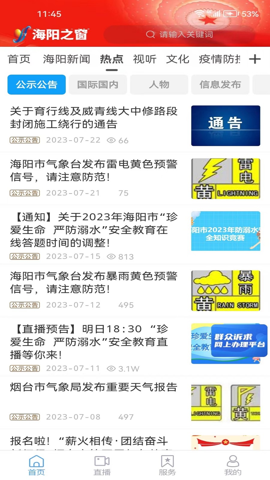 海阳之窗app内的政务信息包含多方面的信息,更新及时,还有众多便民服务等您体验。