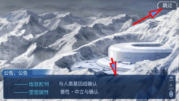 3、之后你就会进入游戏公告提醒,如果想了解游戏剧情你就可以一直点击公告下面的文字,一条一条查看即可,如果想直接跳过可点击右上角。