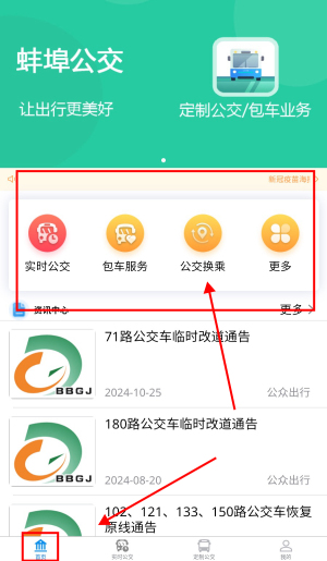 3、在首页中可以查看到实时公交、包车服务等信息。