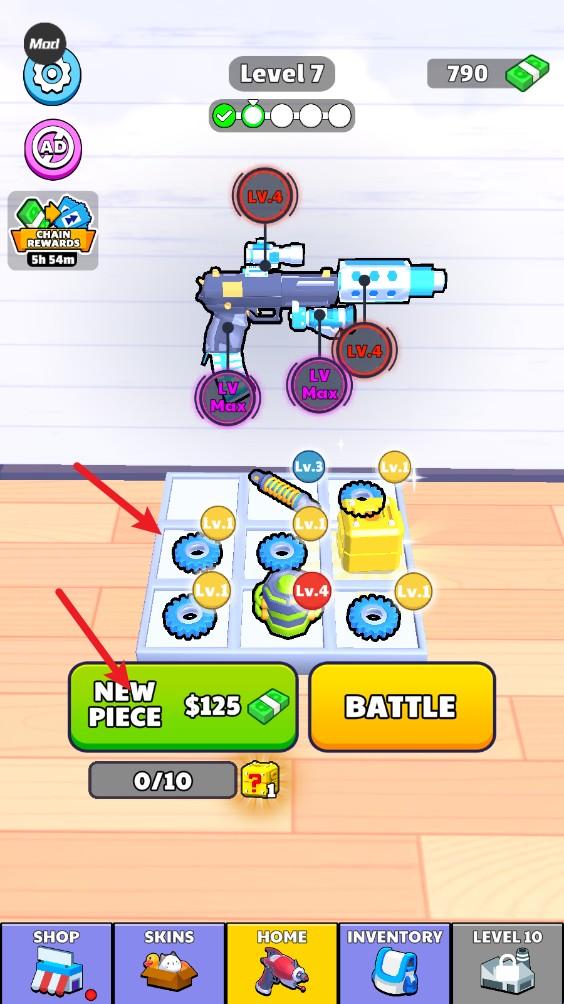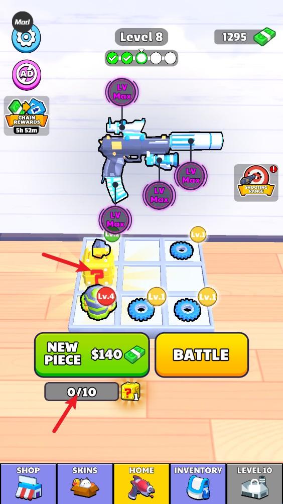 6、回到主界面,我们可以花费货币购买各种零件,相同的零件还能合成升级。