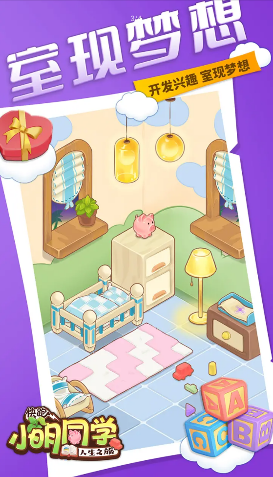 5577game中心带来的快跑小明同学是一款温馨的休闲养成游戏,游戏玩法模拟宝宝的成长环境,去装扮各年龄段的房间,玩家在游戏的每一关都能感受到不同的人生阶段,玩家通过完成有趣的合成任务来获得装扮材料,把宝宝的房间装扮的漂亮有温暖。