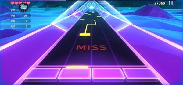 4、随着游戏的进行,旋律也在变化,所以这个时候可以按照线条的变化来滑动;