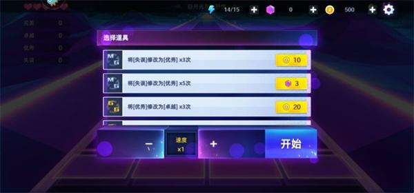 2、选择一个自己喜欢的音乐开始演奏,可以选择道具、速度等等;