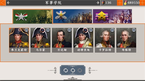 1、游戏可自由招募如拿破仑、威灵顿公爵等历史名将,然后利用战争来提升将领等级技能。