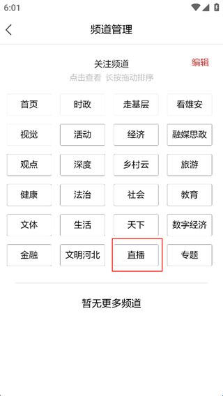 2、点击直播选项