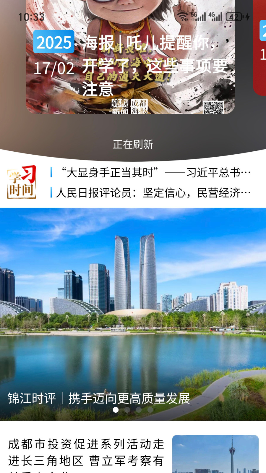 成都日报app也就是成都日报锦观手机软件,它就是《成都日报》的线上版本,大家在手机上就可以看到成都每天更新的新闻大小事件,而且获取的信息更多还节省了纸张。想看什么还可以自己设定关注的,它就会重点给你推送这方面的内容,包括国内国际重大新闻、本地政治经济民生、文化体育等各方面内容都有的看。