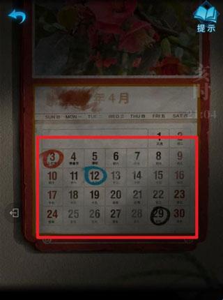 1、点击墙壁上的挂历,记住日记中标注的三个日期,红色03、蓝色12、黑色29。
