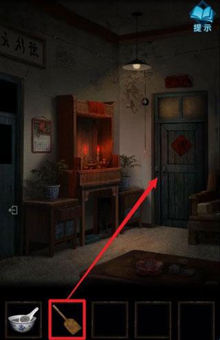 4、对右前方的门使用【香灰铲】,开门后来到院子。