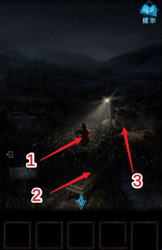 10、走出院子,点击地里的稻草人得到【飘带】,使用铡刀将【飘带】斩断(进行一段剧情后才能用),成【三段飘带】,使用【三段飘带】捆绑旁边的稻草,得到【一捆稻草】,最后使用【一捆稻草】修复稻草人,得到【火钳】。
