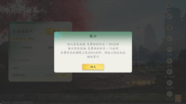 2、首次登录云仙剑世界的玩家可获得300分钟免费体验时长,此后每天登录可领取15分钟免费体验时长;