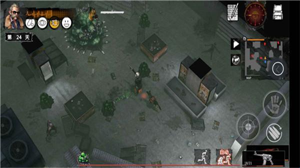 提供近战和远战武器,可搭配潜入玩法。角色听到僵尸动静时会自动进入潜行状态,周围无僵尸则自动奔跑。战斗中需合理利用物品道具,以达到最佳效果。