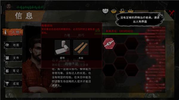 5、前期尽快做夹板绷带,可以找医生换物资。整个游戏多存活一个NPC你的生存压力就会小很多,因为他们都可以进行交易的。