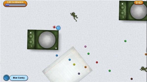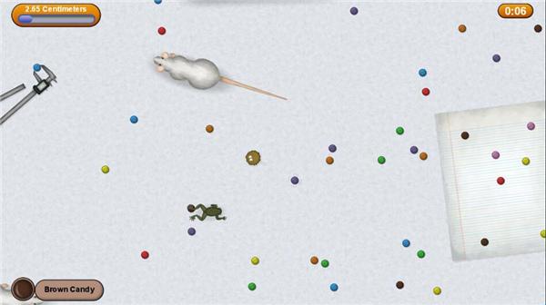 3、游戏中不断吃掉物品,同时还需躲避壁虎和其他大型生物的追补。