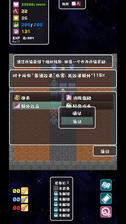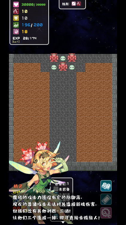 1、转生魔塔战胜怪物将累积经验,随着等级的提升,你将有机会随机挑选技能,合理搭配技能更好通关游戏。