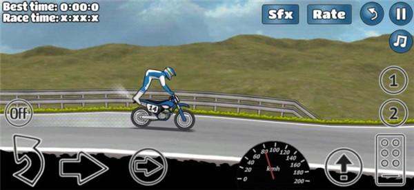 3、掌握摩托平衡,征服崎岖道路,高难度特技表演等你体验。