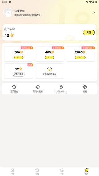 2、福利:完成任务可获取能量,用于解锁小说章节等福利内容。