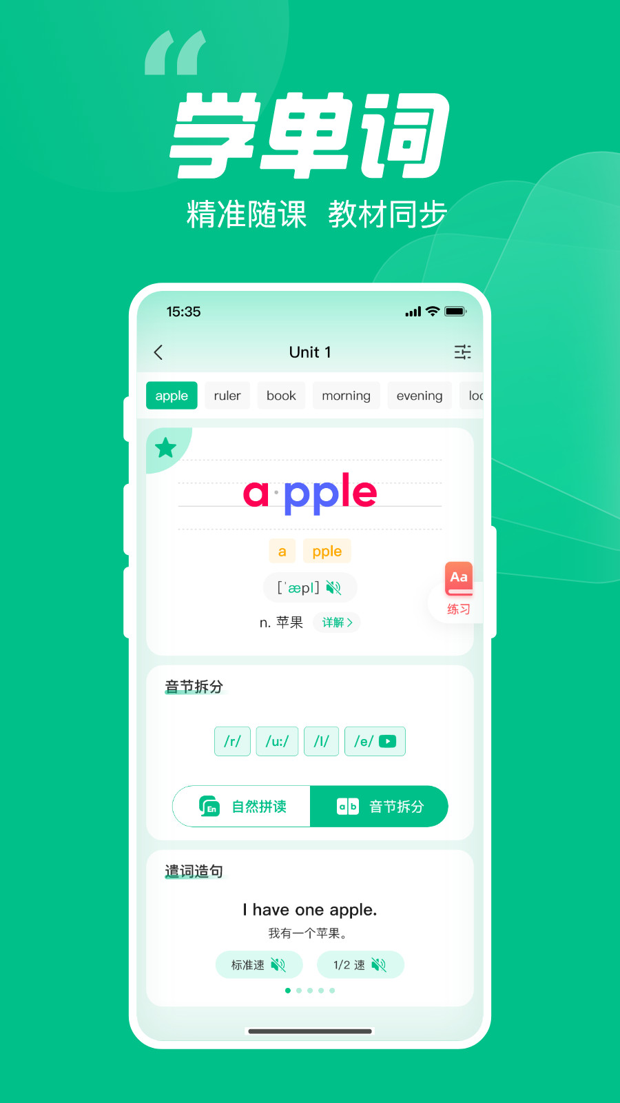 应用提供练习资源,学生能够在线解答练习题目,复习每天学习的单词;