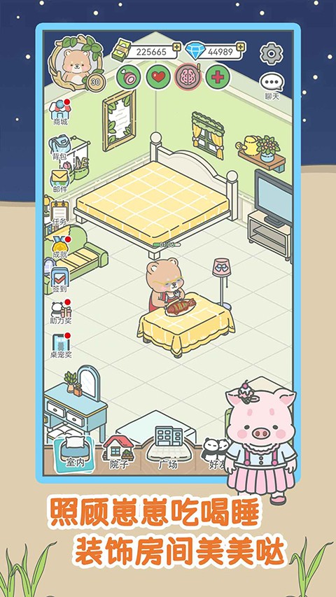 宠我一生是一款温馨治愈向的宠物养成模拟手游,玩家需要从孵化宠物蛋开始,领养一只可爱的小宠物,如小熊、大熊猫、仓鼠等。要负责宠物的日常生活,包括喂食、玩耍、打扫卫生等,保证其健康成长。其中,宠我一生小游戏内的宠物都会经历幼年、成年、老年等不同生命阶段,每个阶段外观和需求都有所不同,让你体验别样的养成玩法。
