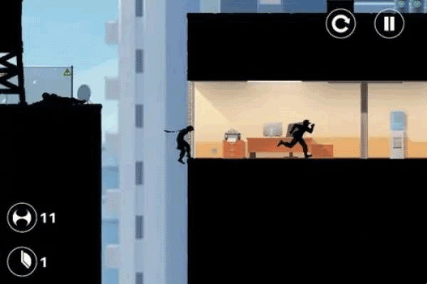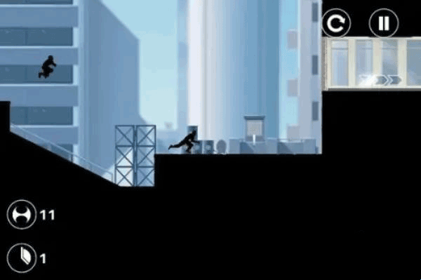 1、首先打开矢量跑酷最新版本,滑过最左边那个塔后不做任何动作,自动跑到人物所在的通道;
