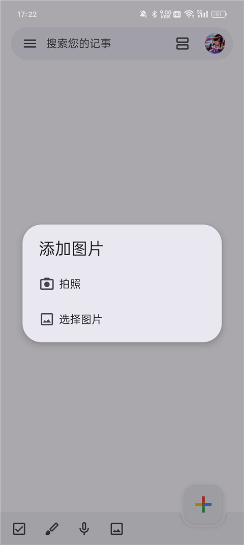 1、下载google keep,点击右下角的【+】号添加新笔记