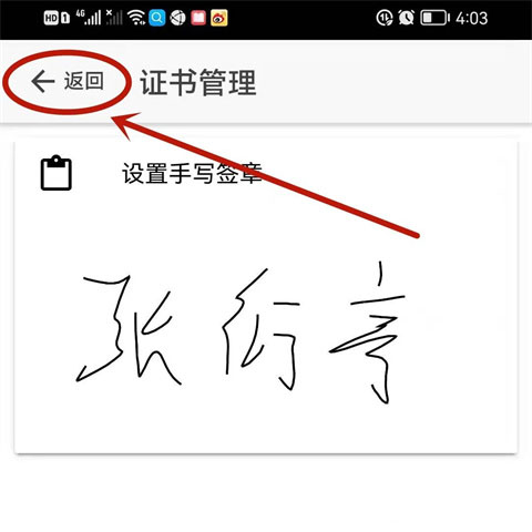 点击「设置手写签章」,在空白区域手写姓名,手写完成点击「完成」。