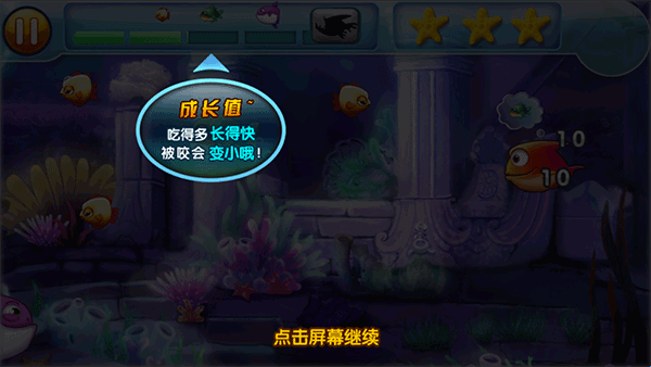 大鱼吃小鱼2是一款非常有趣的休闲益智游戏,玩家需要通过触屏滑动来控制小鱼的方向,从而让小鱼吞噬其他的鱼来让成长,途中需要规避那些比自身大的鱼,避免被吃掉。游戏玩法操作简单且非常容易上手,同时游戏还拥有许多道具供玩家来使用。