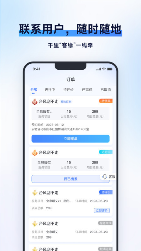3、联系用户,随时随地,千里“客缘”一线牵;