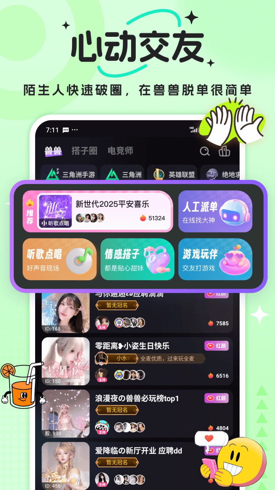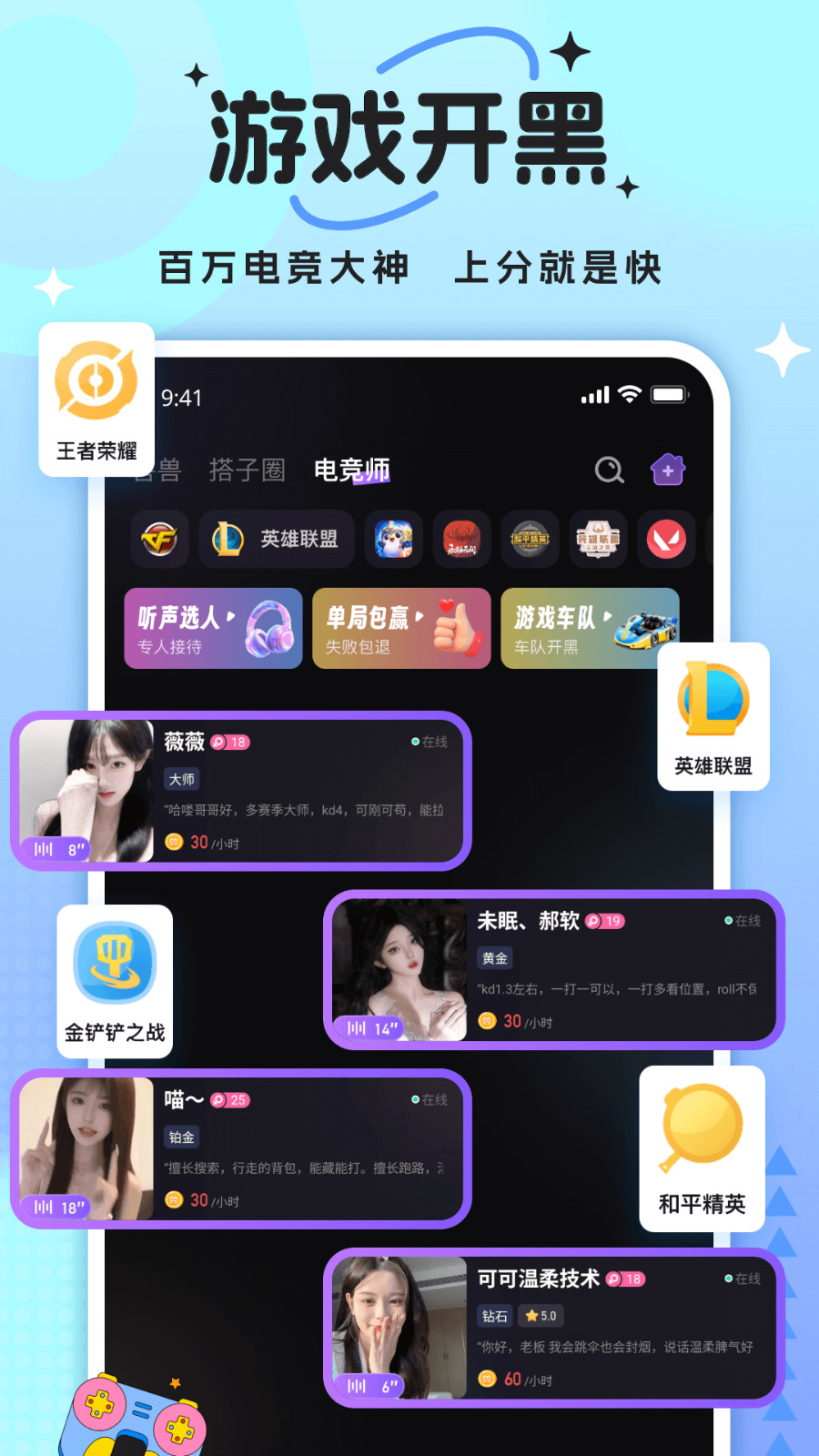 兽兽开黑官方正版是一款拥有海量游戏玩家的开黑交友平台。在软件中无论是陌生人还是老朋友,都可以在这里轻松互动,快速组队开黑,同时还能通过语音交友拓展社交圈子。用户还可以在平台上随时随地开启语音对话,共享声音,享受沉浸式的游戏体验。