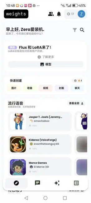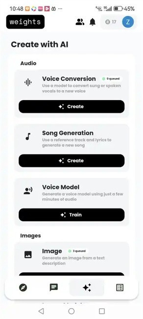 WeightsAI翻唱是个超强的音乐创作神器,支持自定义翻唱和AI辅助创作的功能,非常适合音乐爱好者,你可以创建任何声线来唱你喜欢的任意歌曲,而且声线调整的好就是和人声差不多的,几乎可以说就是人在唱歌了,模拟的很真实。创作完成还可以公开你的模型,让大家也来听听。
