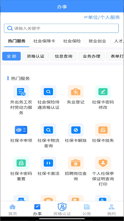 2、在办事模块中,用户可以进行各种社会服务功能的操作使用。