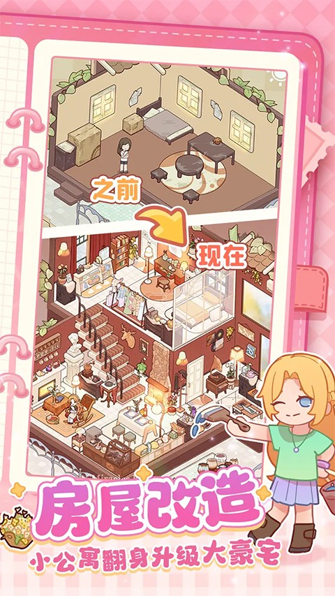 4、游戏可解锁LOFT、复式及别墅等多种户型,施展装修搭配之力,将小公寓升级为大豪宅。