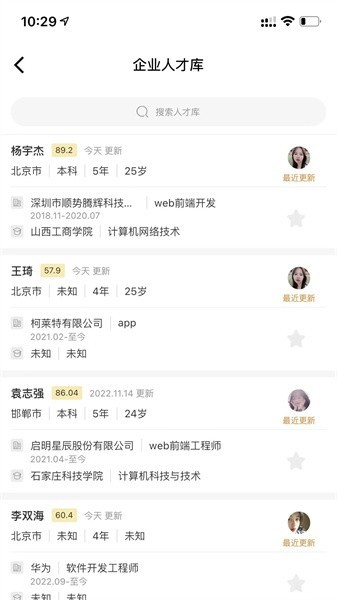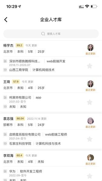 3、能迅速查询选择目标人才,并保持与目标人才的实时沟通。