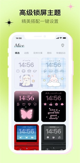 1、米克锁屏包含闪动爱心、小熊表情动图、可爱猫咪动图等趣味元素,让锁屏界面充满动感。