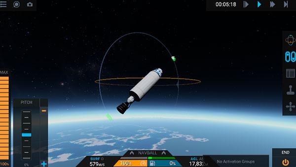 火箭发射成功之后,我们就可以进入到太空中,在太空中我们利用火箭上的尾翼进行火箭的控制,找到我们想要探索的星球,进行接近准备降落。