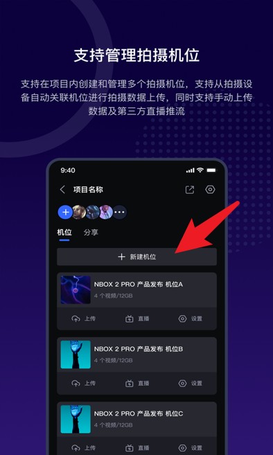 直播监看:支持从NBOX推送或从第三方软件推流直播流至机位,在线监看当前拍摄画面,实时了解当前的拍摄现场状况和进程。