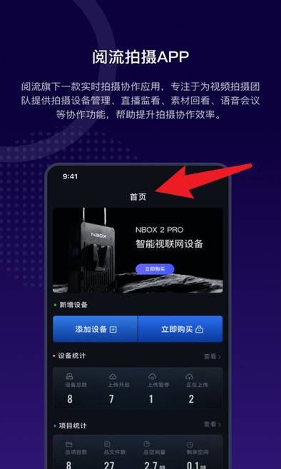 2、登录成功后进入首页,可添加设备或直接购买拍摄设备,进行视频拍摄协作功能设置。