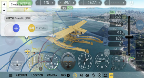 1、选择飞行器后,可在全球任意机场起飞,自由探索各地航线。